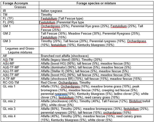 Forage Species / Mixtures