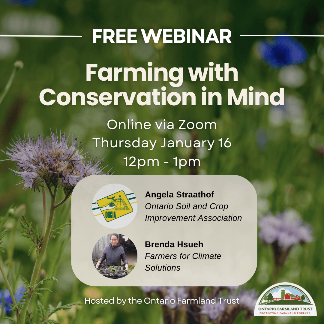 Join the Ontario Farmland Trust in a series of free online webinars to explore pressures on farmland, learn about solutions, and share innovative ideas. There…