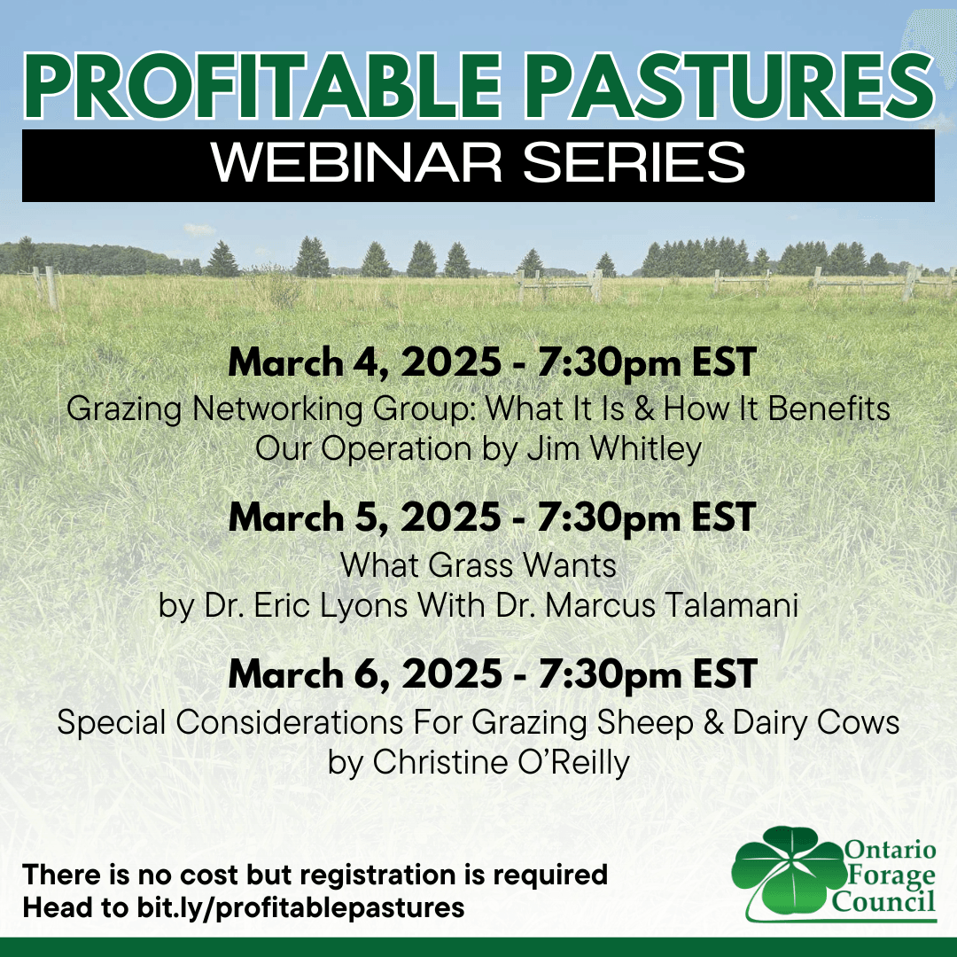 Ontario Forage Council's popular Profitable Pastures webinar series happens March 4th to 6th this year. The nightly webinars happen from 7:30pm to 8:30pm EST each…