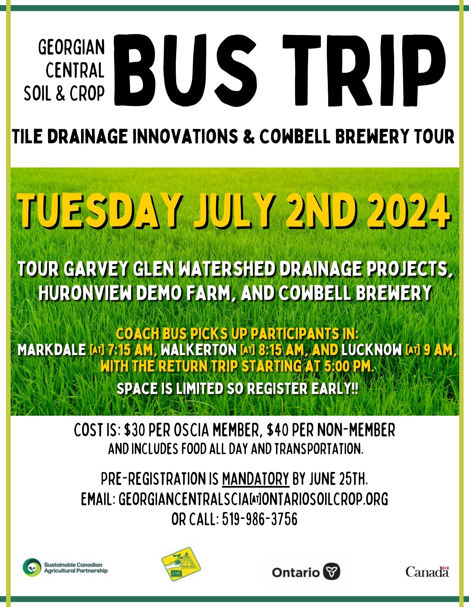 Georgian Central Soil & Crop is hosting a bus tour on Tuesday, July 2nd, 2024. Tour Garvey Glen Watershed drainage projects, Huronview Demo Farm, and…