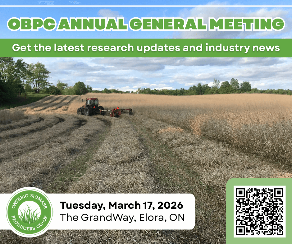 The 2026 OBPC AGM is coming up no Tuesday, March 17th at The GrandWay in Elora from 9am to 3pm. We’ve got an excellent line up of speakers to share the latest research and industry news. Don’t miss your chance to learn more about purpose-grown crops like switchgrass and miscanthus, and the exciting future for biobased materials.