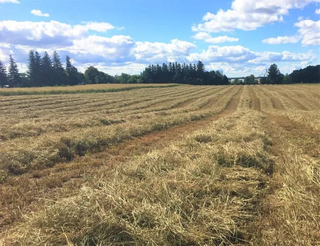 Fall cut and fall baled: Usually a method of harvest reserved for early maturing varieties. In Ontario product is generally cut mid to late September to first week of October. Weather permitting it will dry in 3-4 days to below 18% moisture. An early maturing variety will reach physiological maturity in the latter part of September and is safe to cut without harm to the overwintering root reserves.
