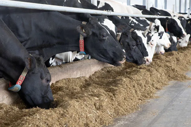 TMR feeding dairy cows: Either fall or spring harvested material falls into this category. Product makes an excellent dairy cow feed for dry cows. Some dairy farmers prefer the Fall cut and baled, however Spring baled appears to work equally well. The grass is very low in potassium (~0.1% spring harvest and 0.4-0.8 fall harvest). Protein range 4-5 % and neutral detergent fibre range 70-80 %. It is considered a sharp fibre which aids rumen function. The lower potassium levels aid at preventing ketosis