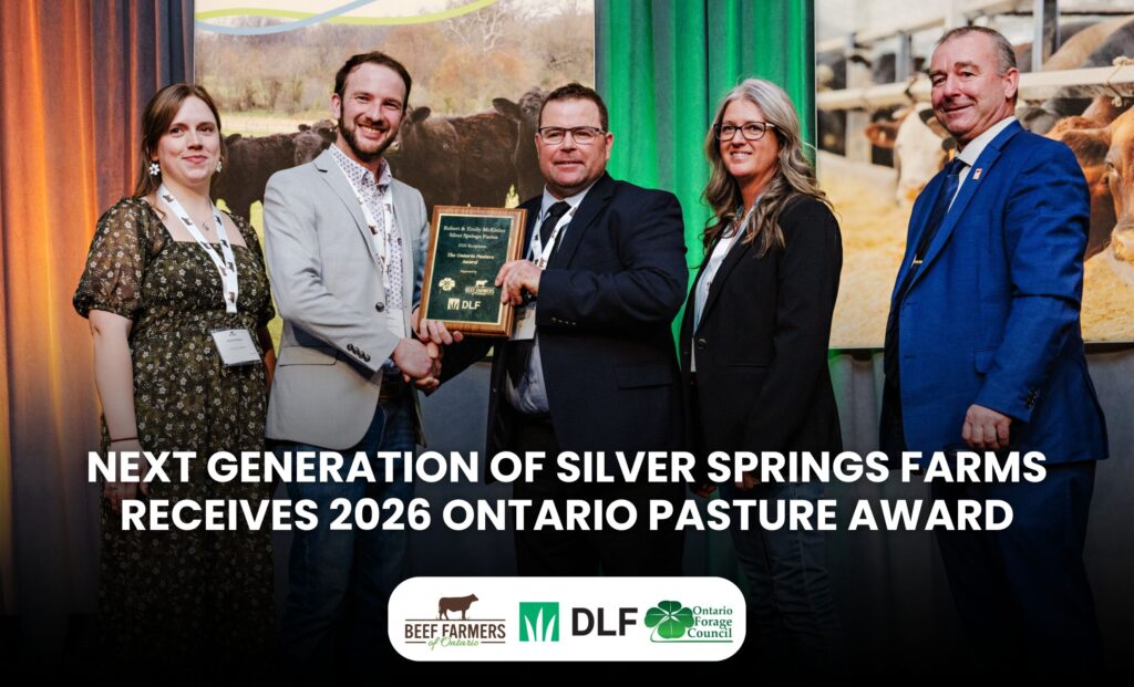 February 19, 2026 – The Beef Farmers of Ontario (BFO), DLF and the Ontario Forage Council are pleased to announce that Robert and Emily McKinlay of Silver Springs Farms of Ravenna, Ontario are the recipients of the 2026 Ontario Pasture Award. In recognition of their environmental improvements and exceptional pasture management, the McKinlays received a $500 cash award and a bag of forage seed courtesy of DLF. Read more…